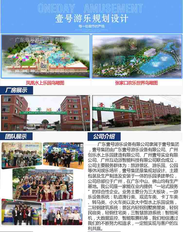 廣東吉米游樂(lè)設(shè)備有限公司成立于2005年,經(jīng)過(guò)幾年的發(fā)展于2016年9月正式在中山注冊(cè),公司總部在廣州番禺,工廠設(shè)立于陜西西安,是一家集研發(fā)、生產(chǎn)、銷售、規(guī)劃設(shè)計(jì)、經(jīng)營(yíng)指導(dǎo)于一體的游樂(lè)設(shè)備公司,公司主要服務(wù)于各大景區(qū)、游樂(lè)園、公園、主題樂(lè)園等供人游玩場(chǎng)所,我公司主旨“一站式服務(wù)”。