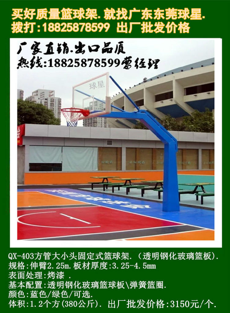 籃球架系列產品顏色為:綠色、藍色、可選.可根據用戶需求改變顏色,產品在沒有特別說明的前提下默認為根據庫存隨機從綠、藍兩種顏色中隨機抽取發貨。