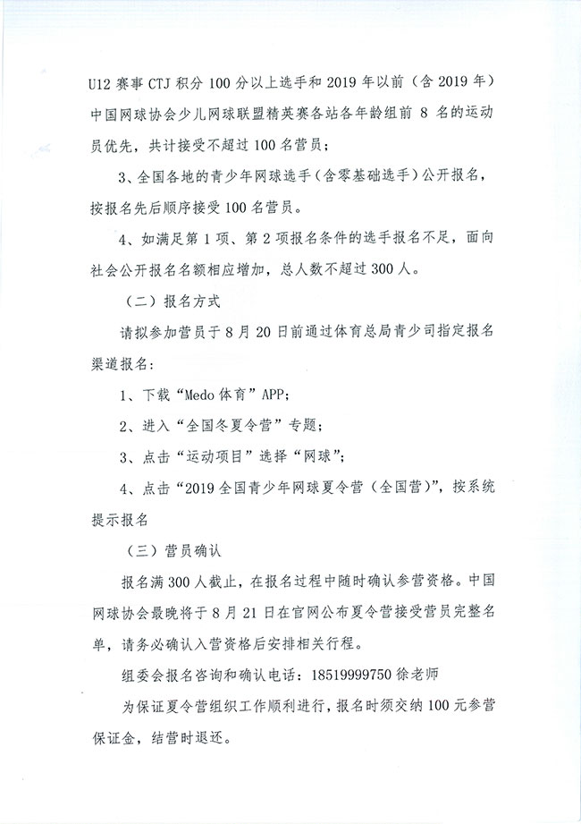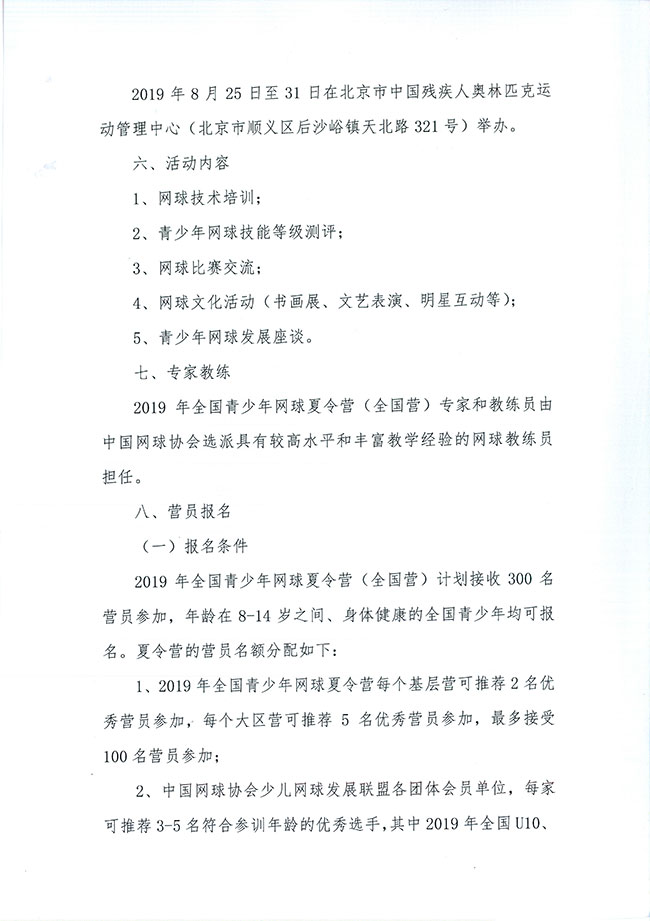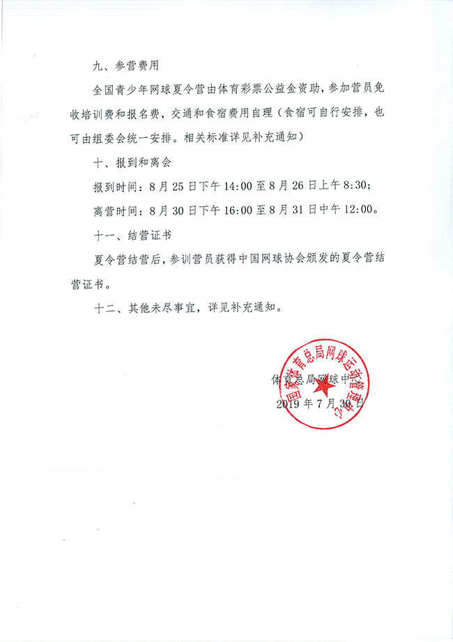 關于舉辦2019年全國青少年網球夏令營(全國營)的通知