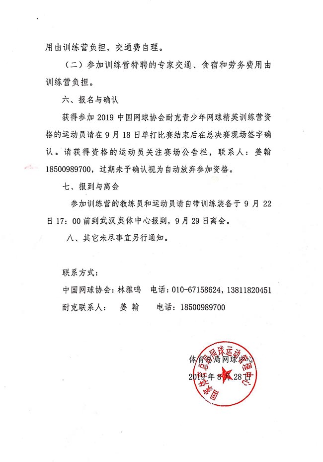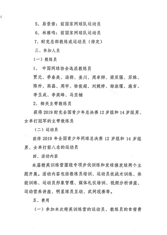體育總局網球中心關于舉辦2019中國網球協會耐克青少年網球精英訓練營的通知