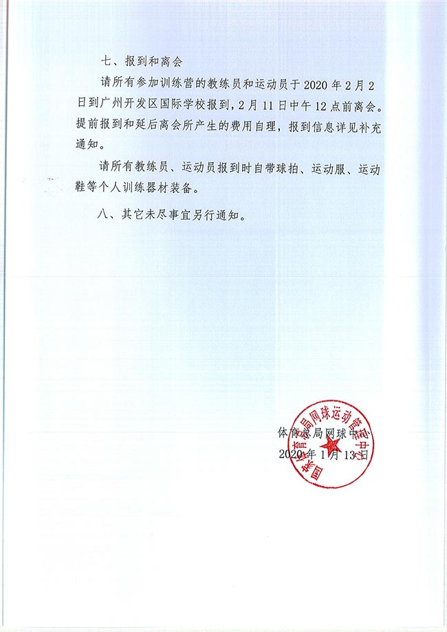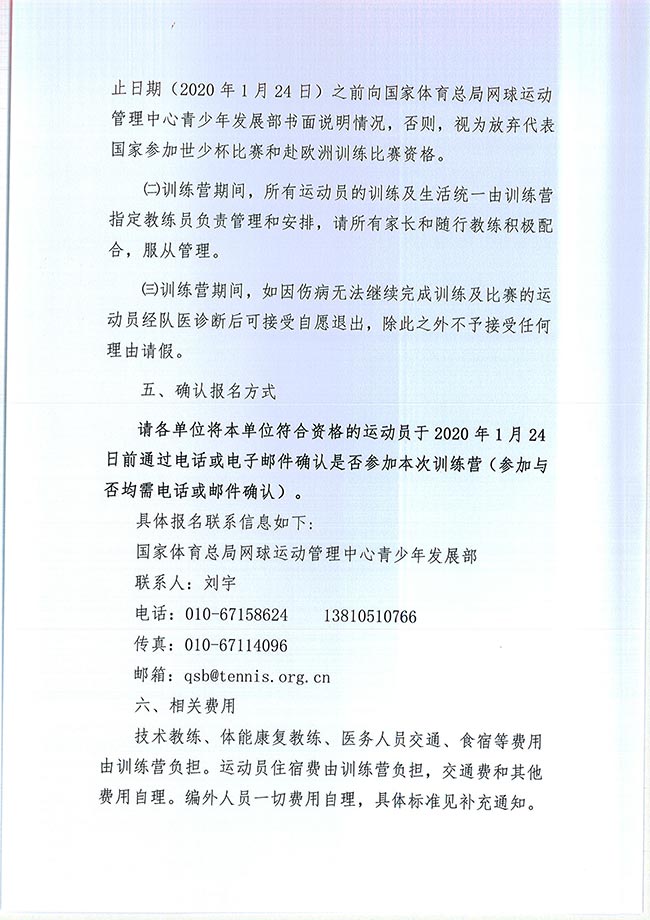 關于舉辦國家少年網球隊訓練營的通知 2020-01-13 13:53:00 中國網球協會