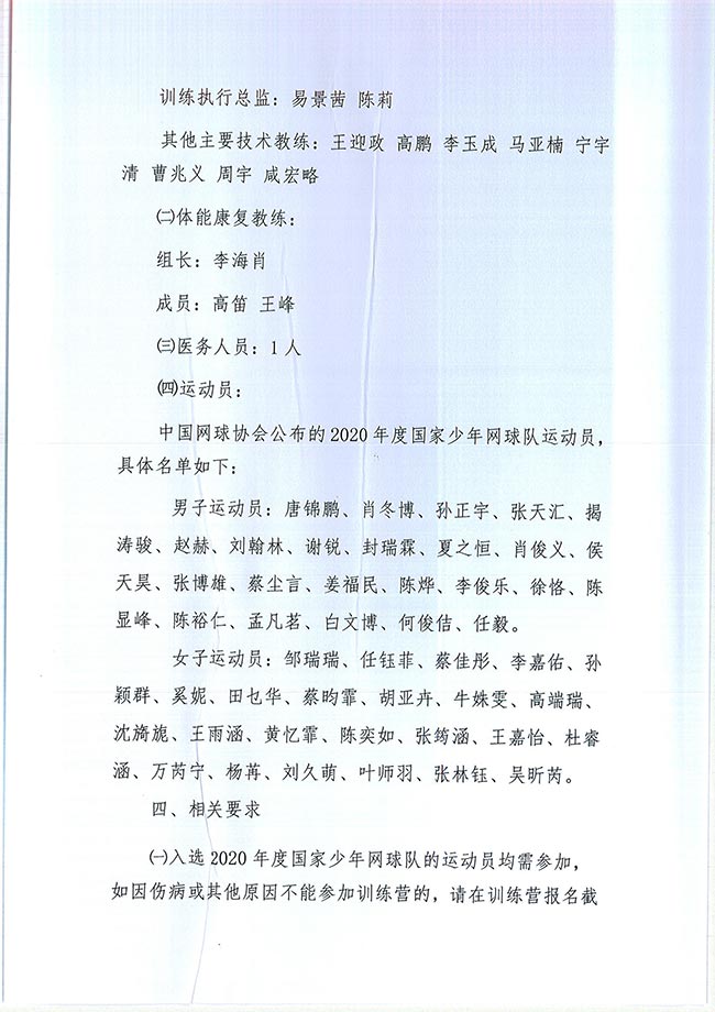 關于舉辦國家少年網球隊訓練營的通知