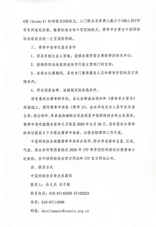關于公開征集2020年ITF常青國際網球巡回賽(國際網聯元老賽)承辦單位的通知