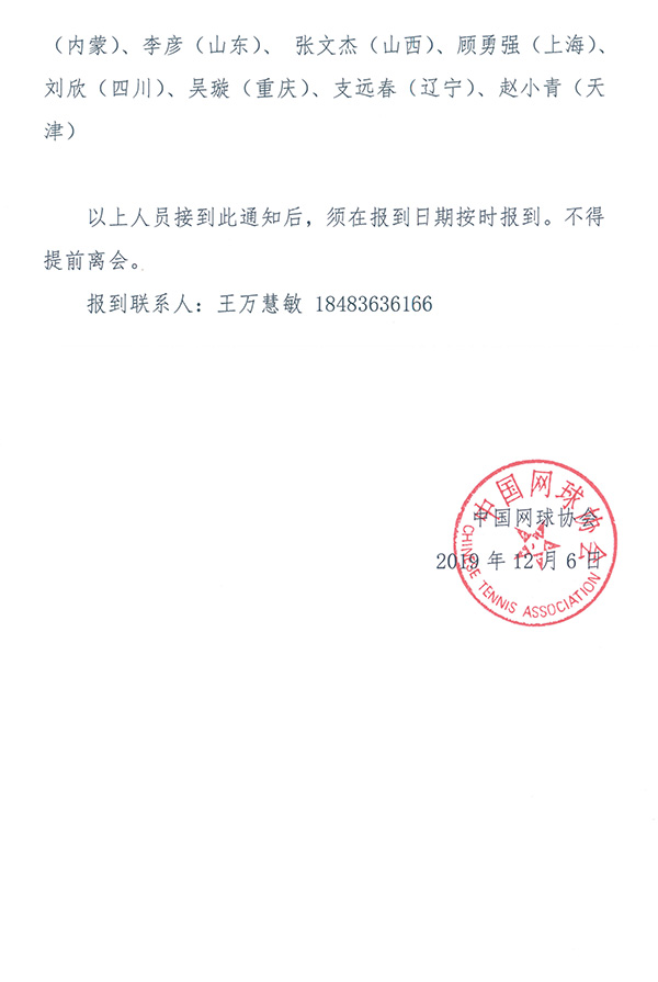 關于參加首屆中國網球巡回賽賽事監督培訓班的補充通知