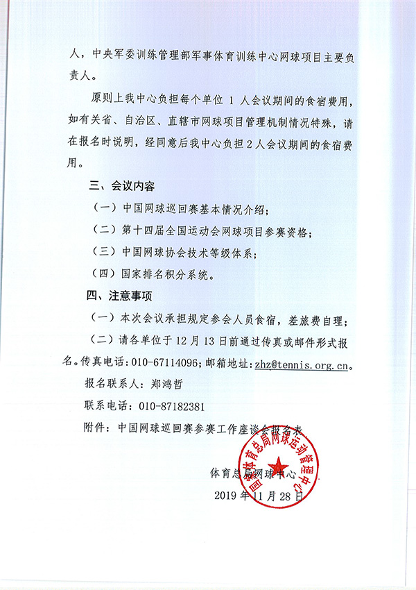 關于召開中國網球巡回賽參賽工作座談會的通知 2019-12-04 16:34:00 中國網球協會