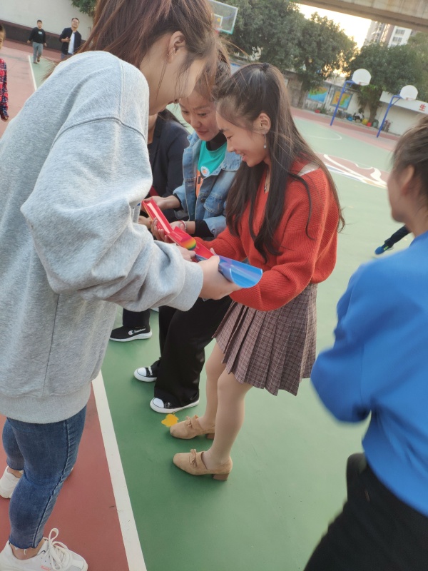 下午四點(diǎn)整,在祝校的組織下,八個(gè)競賽小組整齊列隊(duì)于后操場(chǎng),舉行了簡短的開幕式。隨后,主持人嚴(yán)老師為大家詳細(xì)介紹了此次活動(dòng)的具體內(nèi)容與流程,并重點(diǎn)強(qiáng)調(diào)了“背靠背運(yùn)球”、“投環(huán)圈”、“不倒森林”、“歌王爭霸”等具體環(huán)節(jié)的注意事項(xiàng)。隨著一聲哨響,早已摩拳擦掌、躍躍欲試的“運(yùn)動(dòng)員”們開始了競技大比拼。一時(shí)間,吶喊助威聲此起彼伏,整個(gè)現(xiàn)場(chǎng)也隨之熱鬧了起來:有的隊(duì)員一點(diǎn)就通,還不忘來回給自己的隊(duì)員示范;有的隊(duì)員一知半解,動(dòng)作也不協(xié)調(diào);有的隊(duì)員五音不全,還忘記了歌詞,充當(dāng)了喜劇演員,把大家逗得捧腹大笑;有的甚至忘記了裁判的存在,自顧自的玩起來……活動(dòng)最后,在“自己動(dòng)手、豐衣足食”的環(huán)節(jié)中,籌備組還為大家端出了精心準(zhǔn)備的食材,老師們也紛紛擺開陣勢(shì),扮演起了“大廚”的角色,為大家?guī)砹艘粓?chǎng)別具一格的“美食匯”。在一片歡聲笑語中,本次活動(dòng)也逐漸落下了帷幕。