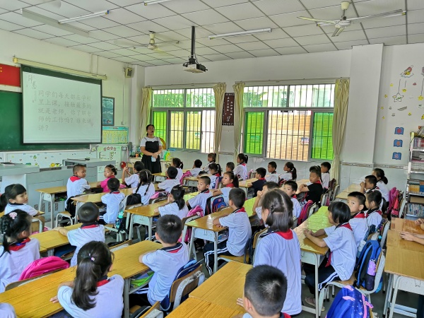 活動二:9月9日,南朗旗風學校開展“感恩教師節”為主題的班會課活動,班主任不僅帶領學生學習教師節的由來,還通過講解教師的多重身份,如“警察”、“主持人”、“演員”等不同角色,讓學生理解教師的艱辛、不易;列舉了部分從古今感人的教師事跡,讓學生感受教師的偉大、無私。最后,讓學生聆聽一首《每當我走過老師窗前》,向教師表達自己的祝福,不少學生聽著聽著,不由自主地跟著唱起來了,學生動聽的歌聲中,傳送的是他們對教師最真摯的祝福。