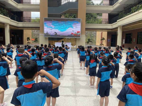 6月24日大課間時間,在學校中庭開展2020年“書香校園·護苗·禁毒·綠書簽行動”禁毒宣誓、簽名承諾活動,由大隊輔導員葉老師帶領全校師生禁毒宣誓,接著分班進行簽名。下午,“讓祖國花兒更鮮艷”馬嶺小學講故事比賽在多媒體室舉行,同學們表現非常精彩。