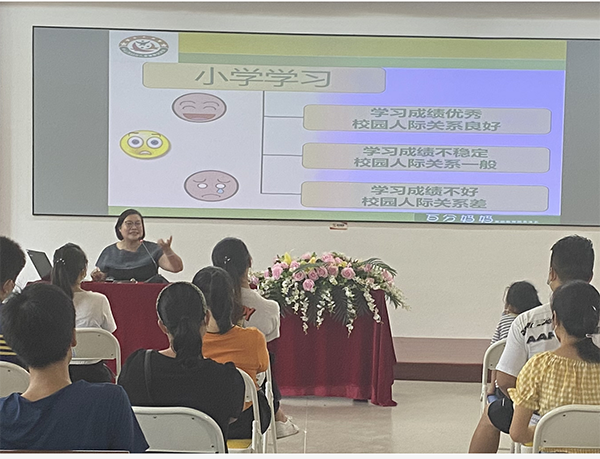 9點(diǎn)30分,一年級(jí)家長(zhǎng)會(huì)議暨家庭教育講座在多媒體室舉行。活動(dòng)邀請(qǐng)到國(guó)家高級(jí)家庭教育指導(dǎo)師葉文芳老師給家長(zhǎng)們作了“ 教育的長(zhǎng)遠(yuǎn)目標(biāo)——培育在充滿挑戰(zhàn)的世界里健康向上的孩子”和“ 家校合力促進(jìn)孩子全面發(fā)展”為主題的講座。葉老師用通俗易懂的語(yǔ)言告訴家長(zhǎng)如何引導(dǎo)孩子健康向上做一名快樂(lè)、優(yōu)秀的小學(xué)生,并強(qiáng)調(diào)家長(zhǎng)不僅盡己所能支持鼓勵(lì)孩子成為最好的自己,也要以身作則成為孩子行為養(yǎng)成的導(dǎo)師。葉老師深入淺出的分析讓新生家長(zhǎng)興趣大增,積極投入,贏得了家長(zhǎng)們熱烈的掌聲。