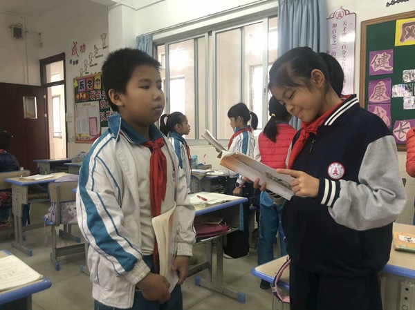 活動中,孩子們精神抖擻,用真摯飽滿的情感和鏗鏘有力的語言,將《弟子規》《千字文》《論語》《中庸》《老子》《史記-資治通鑒》等經典國學詩文進行背誦考核。本次考核活動形式由高年級的“考官”考低年級的學生,中高年級則班級之間互考,各語文教師組織監考。各班校本課程《國學經典》的通過率均超過98%,還有很多孩子熱愛國學,超前誦讀學習國學經典詩文。孩子們聲情并茂、朗朗上口的古詩文誦讀得到了語文老師們的稱贊,