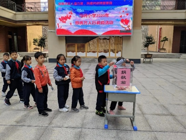 為深入貫徹落實(shí)習(xí)近平新時(shí)代中國(guó)特色社會(huì)主義思想和黨的十九大精神,圍繞以人民為中心的發(fā)展理念,弘揚(yáng)人道博愛精神,踐行社會(huì)主義核心價(jià)值觀,提高全民公益文明素養(yǎng),打造公益慈善文化品牌,南區(qū)馬嶺小學(xué)于2020年1月3日上午,在學(xué)校中庭開展2020年慈善萬人行募捐活動(dòng)。