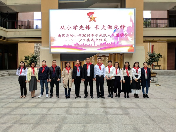 12月31日下午,中國少年先鋒隊中山市南區馬嶺小學2019年少先隊入隊暨學校少工委成立儀式在學校順利舉行。南區教育事務指導中心主任、少工委副主任梁志東,南區少先隊總輔導員吳杏鈿和家長代表一起見證此次會議的開展。