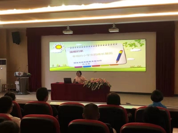 葉文芳老師根據孩子的年齡特點從學習動力、學習能力、社交能力、自理能力、抗挫能力五個方面深入講解。她通過生動的案例,與新生家長分享了這五大能力的具體內容。隨后,葉老師為家長們詳細解讀“溫暖的家——幸福的小學生的成長基因”、“溝通有道——家教方程式”、“安全——助力孩子健康成長”等方面的具體有效的溝通技巧。葉老師將深邃的理論化作發人深思的案例,觸發家長們內心的思索,讓與會的家長受益匪淺,為家長們奉上了一場精彩的精神盛宴。