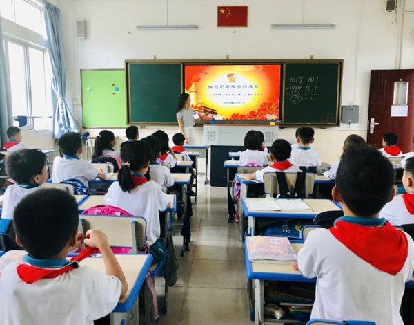 學(xué)校各班結(jié)合班級學(xué)習(xí)情況,開展了一系列的國慶宣傳活動。如在班主任的指導(dǎo)下,每個班級里的黑板報都圍繞著“中華人民共和國成立70周年”更新了內(nèi)容,各有特色。其次各班還開展了“喜迎70華誕,向祖國致敬”的主題班會、觀看愛國教育電影。此外學(xué)校還聯(lián)合求索書院開展親子閱讀故事會向祖國母親致敬!