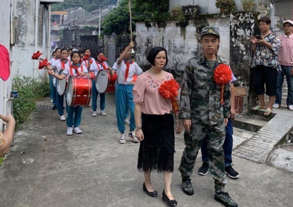 北溪社區人頭攢動,一個身著戎裝、胸佩紅花的熱血青年,將從這里走向軍營,他們將帶著父母親的期望和囑托,到祖國的邊防前線創造生命的輝煌,北臺小學鼓號隊全體隊員望著身著軍裝的新入伍軍人,熱血沸騰!在歡送儀式上,北溪社區應征入伍的優秀青年的臉上充滿青春朝氣,也寫滿了興奮。鞭炮聲再次響起,少先隊員們的歡送鼓聲一路灑滿街道,新兵踏上了前往軍營的征程。送兵儀式成了北溪社區一道亮麗的風景,引來了許多路人的駐足觀看。