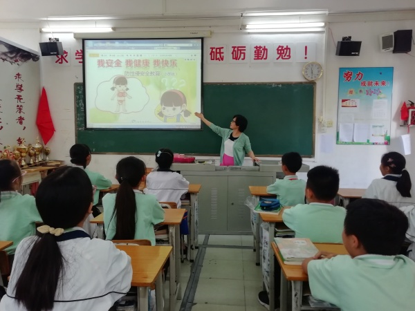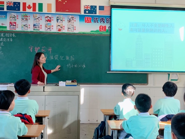 11月初,學校召開教師的預防未成年人被性侵害工作會。11月1日至11月12日,學校組織教師分批觀看關于未成年人教育電影《少年的你》。11月29日之前,各班分批開展“守護花開”防治性侵害未成年人犯罪的主題班會。主題班會圍繞“認識我們的身體”、“分辨和防范性侵害”、“遇到性侵害時該怎么做”三個方面展開。會上,班主任通過模擬示范、游戲互動、案例剖析等形式,告知孩子們何為性侵害,指導孩子如何辨別性侵害行為,了解身體的隱私部位,并告訴孩子隱私部位是不允許別人觸摸的,警醒孩子們要擦亮眼睛看清身邊人的行為,不要因為對方是熟人就放松警惕;指導孩子們遭遇性侵犯后如何自護自救及尋求幫助,引導學生正確對待性侵害,樂觀勇敢的面對困難,熱愛生活,珍愛生命。