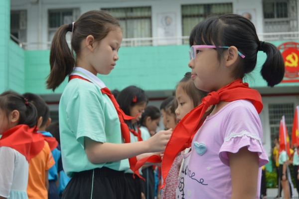 10月10日上午,竹秀園中心小學(xué)舉行主題為“紅領(lǐng)巾與祖國共成長”的入隊(duì)儀式。一年級的四十名優(yōu)秀的預(yù)備隊(duì)員,光榮地加入了中國少年先鋒隊(duì),成為少先隊(duì)組織的一員。學(xué)校少工委副主任羅少光為此次活動作出講話。