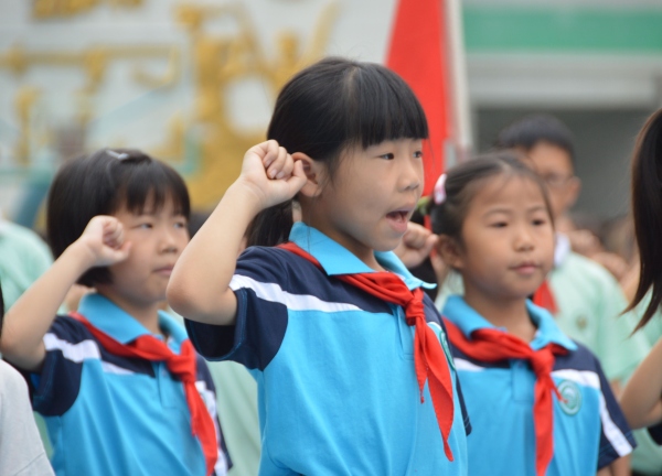 “準(zhǔn)備著,為共產(chǎn)主義事業(yè)而奮斗!”“時(shí)刻準(zhǔn)備著!”在全體少先隊(duì)員共同呼號聲中,本次新生入隊(duì)儀式落下帷幕。佩戴上鮮艷的紅領(lǐng)巾,讓每一名少先隊(duì)員都增添了一份自豪與責(zé)任;莊嚴(yán)而隆重的儀式,給每一名新隊(duì)員心中都留下無比神圣和難忘的記憶,為他們的人生畫上濃墨重彩的一筆,也讓孩子們對他們胸前的紅領(lǐng)巾,多了一份驕傲與敬畏之心。光榮的少先隊(duì)員們,必將不辱使命,奮勇前進(jìn)!