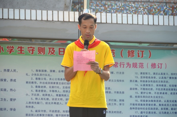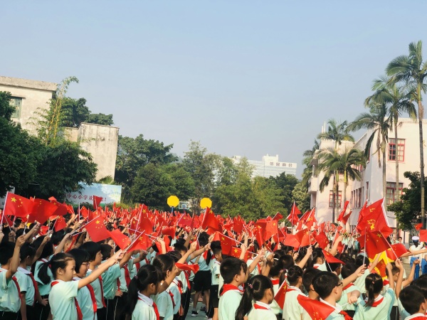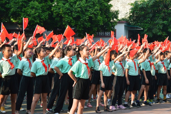“我們愛(ài)我們的祖國(guó),我們感謝祖國(guó)給予我們的陽(yáng)光和庇佑,讓我們有信心在這溫暖的土地上茁壯成長(zhǎng)!”六3中隊(duì)的高慧格進(jìn)行了國(guó)旗下講話(huà),深情地表達(dá)了對(duì)祖國(guó)的熱愛(ài)。李向平校長(zhǎng)希望各位老師扎根到學(xué)校教育中,牢記黨的教誨,不忘初心,揮灑汗水,用心耕耘。希望各位同學(xué)珍惜現(xiàn)在的大好時(shí)光,努力學(xué)習(xí),做彰顯竹秀園中心小學(xué)精神的少年君子,為五星紅旗增光,為紅領(lǐng)巾添彩!國(guó)旗下講話(huà)結(jié)束后,全體少先隊(duì)員在國(guó)旗下齊唱《我和我的祖國(guó)》,并齊聲高呼“祖國(guó)萬(wàn)歲”的口號(hào),嘹亮的聲音響徹校園,錚錚誓言再次堅(jiān)定了隊(duì)員們?yōu)楣伯a(chǎn)主義事業(yè)奮斗終身的信心和決心。