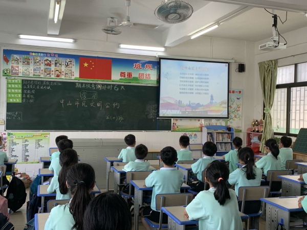 為培養和弘揚社會主義核心價值觀,提高市民文明和社會文明程度,提升城市文明形象,2019年6月21日,竹秀園中心小學組織學生學習《中山市民文明公約》。