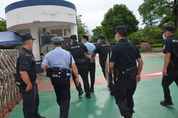 下午放學時段,一聲“嗚——!”急促地警報聲將全校帶入了模擬暴恐事件的情境中。門衛(wèi)保安發(fā)現歹徒,及時向鄧定波主任匯報,鄧主任迅速向林泳瑤校長匯報,并向派出所請求支援。同時鄧主任拉響警報,通過廣播播報歹徒出現地點和現場情況。學校應急小組成員聽到警報迅速拿起器具,向出事地點集結,學生和老師聽到警報后迅速且有序撤回教室,等學生到齊后關好門窗,并及時清點人數。同時樓道執(zhí)勤的教師迅速到位負責本區(qū)域的安全。隨后學校保安人員和學校應急小組隊員協同趕來的干警及時將歹徒制服并押走,至此,良都小學防恐防暴應急安全演練圓滿結束。