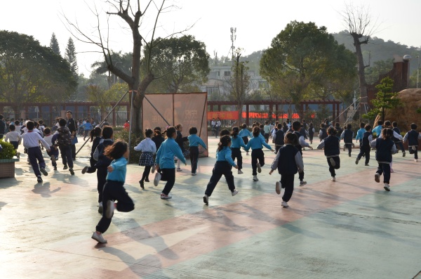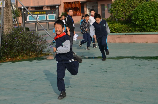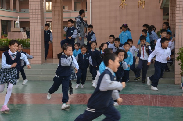 隨著警鈴的響起,疏散演練拉開了序幕。學校領導、老師迅速組織同學們撤離教室,在全體教師的有序組織下,學生迅速疏散到操場。撤離過程中,同學們時刻保持警覺,彎著腰、壓低身體迅速前進,孩子們熟練地利用自己的手或者衣物捂住鼻口,防止煙霧的吸入。樓上的班級和老師一起下樓梯。在老師的引導下,有序地沿左、中、右3個樓梯口疏散。從警報響起到800多名全體師生就位于安全地點,用時2分15秒,疏散演練的效果顯著。同學們到達指定疏散地點后,各班立即匯報人數,班級班干部向相關老師報告疏散情況以及到場人數。