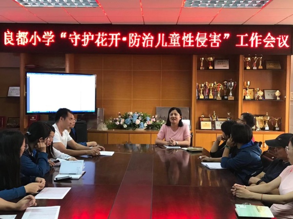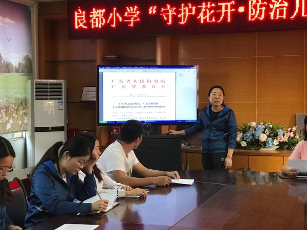 除了主題班會的開展,良都小學在上周五也組織全體教師學習《開展“守護花開”防治性侵害未成年人犯罪專項行動的實施方案》文件精神,會議由吳麗歡副主任主持。吳主任強調各位老師應該加強對學生防性侵宣傳教育,提高學生防性侵意識,做到防患于未然,切實保障學生自我安全。