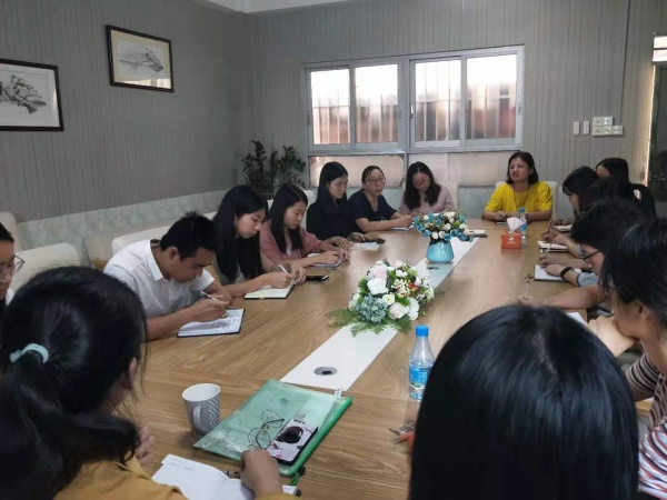 會議開始,首先各位新教師就入職以來的進步與不足或近段時間教育教學中遇到的難題、困惑等進行了分享。各教師分享后,陳莉江主任對新老師提出疑問和認真反省自己的態度表示高度欣賞。同時,陳主任還對新教師提出了以下幾個方面的要求:一是落實常規教學;二是鼓勵新老師積極主動學習來提升自我,珍惜每次外出學習機會,并且指出新教師對待教師職業要有情懷,要有追求,在教育教學的路上不能懈怠,也鼓勵新教師積極參加各種教學比賽來提升自己的教學能力。吳麗歡主任也在會上發言,她的語言幽默并具有感召力,號召年輕老師們積極進取、大膽創新,讓青春在奮斗中散發光彩。