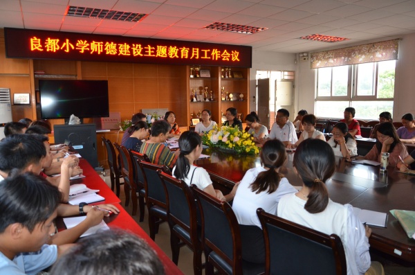 學高為師,身正為范。9月19日下午,良都小學召開以“不忘初心,牢記使命”為主題的師德建設主題教育會議。在林泳瑤校長和鄧定波主任的組織下,良都小學全體教師參加了會議。