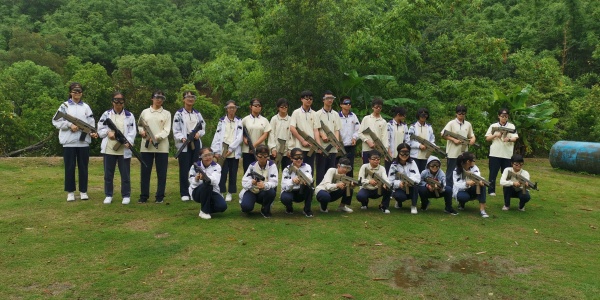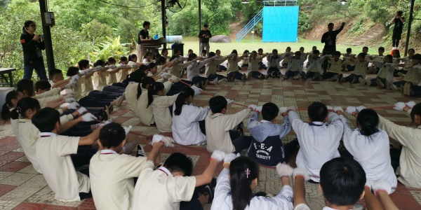 參觀完中山市革命史跡陳列館,同學們就前往中山市綠色戶外運動拓展訓練基地,參加拓展訓練營的活動。在拓展訓練營里,教官們為同學們精心設計了豐富多彩的訓練拓展活動,包括有集體圓形扯大繩、爬繩梯、叢林野戰等等。在協作互助、緊張刺激、或實或虛的游戲體驗中,同學們收獲了成長的幸福和喜悅。