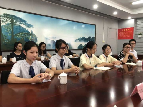 良都中學德育處副主任陳嫣桃首先作了發言,她從一次辯論會的故事開始講起,提出學校在培養良知良行、向真向善、落落大方的良中人方面進行的有益探索,提出要增強學生的內在修養自信、文化水平自信、視野開拓自信,通過自主管理、團隊凝聚、主題教育、精彩活動等幾個方面實現學生在言行舉止上落落大方;初二7班李柏玲和初二2班林靜同學也分別分享了自己在參加學校的團隊活動中收獲的成長點滴,在觀看了習近平總書記的系列講話視頻后,他們也提出一定要努力學習,完善自我,以更優秀的接班人的姿態承擔歷史的重任;池海旻老師從美育的角度出發,結合南區僑鄉建筑的寶貴資源開展學生愛國愛鄉教育,通過攝影、美術作品等載體,展現僑鄉風土人情、增強接班人的民族自尊心、民族文化的自信心和自豪感;溫婷婷老師從《流浪地球》同名電影郭帆追夢的故事引入,分享了自己教育追夢的經歷,鼓勵班級學生敢于有夢、勇于追夢、勤于圓夢,并給他們制定了三年的發展規劃:初一樹立夢想、初二追夢、初三圓夢;團委書記陳樂貞也分享了自己假期出游多個國家后對比產生的感受以及曾在良都中學任教的外籍老師對擴建后的良都中學辦學環境和條件的肯定贊賞,表達了作為中國人的滿滿幸福感以及她在開展團工作尤其是宣講團課過程中,采用多種形式吸引團員積極參與,受到團員們的熱捧……良都中學師生代表的發言獲得了在場領導、老師的好評。
