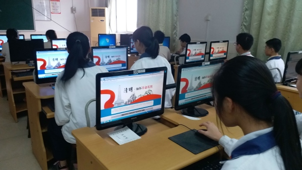 在網上,從3月27日開始,良都中學就組織各班同學在電腦課上開展了“網上祭英烈”活動。同學們打開中國文明網,通過點擊鼠標向烈士鞠躬、獻花,表達對先烈的哀思。并在留言欄里撰寫留言,表達對革命先烈誠摯的敬意和深切的懷念。