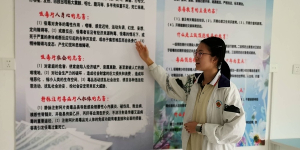 同學們在吳宇捷同學的帶領下,在禁毒教育展覽室里,對各種毒品及毒品的危害再作了仔細的認識,對各種常見的毒品的危害再作了深入的了解:通過吳宇捷同學的講解,同學們再次參觀展覽室里展示的樣板、圖片,清楚認識了常見毒品的模樣;通過閱讀展覽室里有關毒品的知識介紹、吸毒者的反面教材案例,同學們深刻認識到那些毒品對人們身體健康的嚴重危害、毒品對家庭、對社會的嚴重影響。