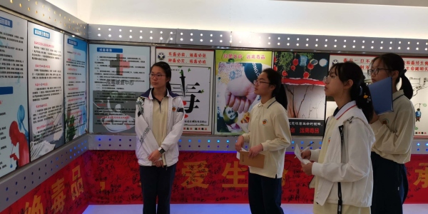 近日,為繼續加強對學生的禁毒教育,讓學生對毒品的性質、危害有更加深刻的了解,良都中學安排各班學生代表參觀了南區禁毒教育基地,并且讓初三4班的吳宇捷同學作為解說員,跟參觀的同學作現場的解說。