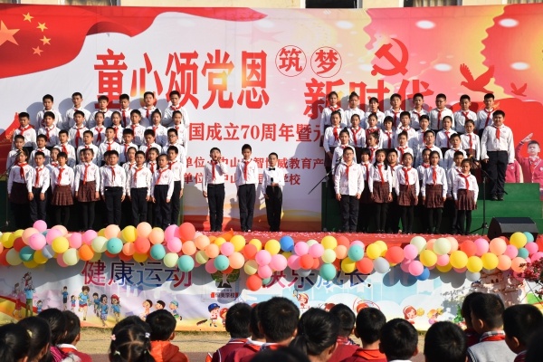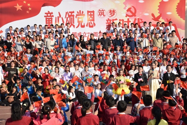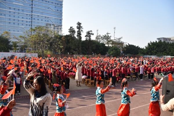 現場氣氛高潮迭起,臺上臺下的現場互動之聲更是此起彼伏,精彩的表演不時博得現場觀眾陣陣熱烈的掌聲,喜慶歡樂的氣氛洋溢在舞臺的每一個角落,精彩的節目讓校園充滿了歡笑和溫馨。最后,全體小演員們和在場的所有師生、家長們齊唱《我和我的祖國》來表達對祖國的熱愛和那顆熾熱的赤子之心。