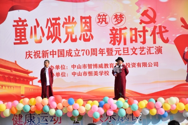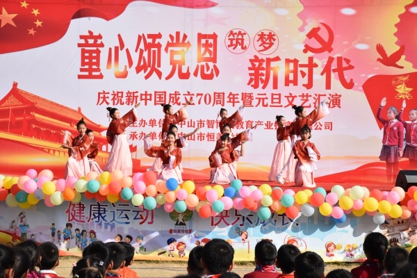為慶祝新中國成立70周年,值2020年元旦來臨之際,為了豐富學生的校園生活,提高學生的活動能力,促進學生的全面發展,營造文化氛圍,以豐富多彩的形式辭舊迎新,2019年12月27日下午,恒美學校舉行題為“童心頌黨恩,筑夢新時代”——慶祝新中國成立70周年暨元旦文藝匯演的活動。
