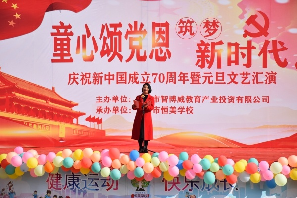 活動開始,恒美學校韓少蘭校長為本次活動作了精彩的致辭,她用“穩中求進,好上加好,逐夢2020年”為主題,向來賓們總結了2019年的成績,展望明年學校的美好前景。