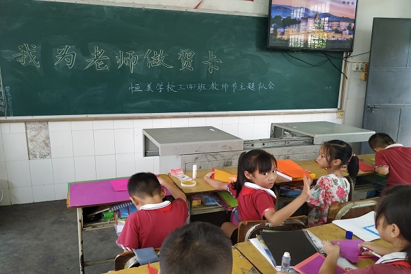 全校24個班級學生現場制作各種賀卡并寫上祝福短語送給老師,孩子們發自內心的祝福讓老師們甜透心田。有的班級,孩子們聲情并茂、慷慨激昂的朗誦,表達對老師的感恩之情,并大聲地祝賀老師節日快樂,身體健康,工作順利。校園里洋溢著喜慶,課堂上充滿溫馨,老師們感到濃濃的幸福,他們表示一定要不忘初心,勵志前行,用熱情點燃學生心燈,做好學生的引路人,譜寫師生結伴成長新篇章。