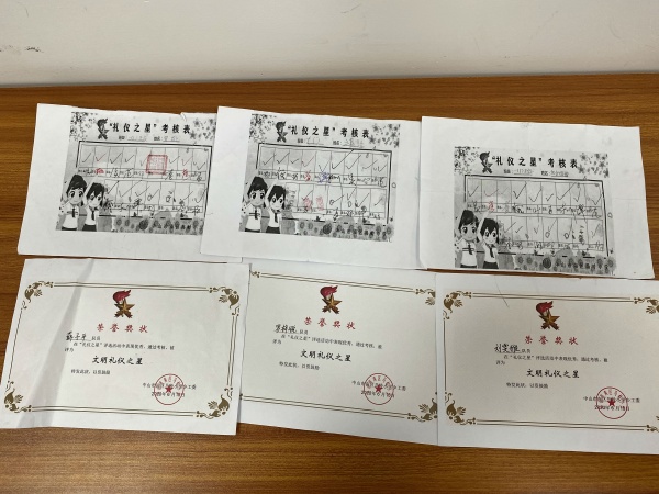 6月11、12日兩天,學(xué)校開展“禮儀之星”考評(píng)活動(dòng),學(xué)生向全校教師敬標(biāo)準(zhǔn)的隊(duì)禮以及問好后,獲得教師在其考核表上蓋章并簽名的獎(jiǎng)勵(lì),得到全校16位老師的簽名以及蓋章后,將獲得2020年馬嶺小學(xué)“禮儀之星”的獎(jiǎng)狀。6月15日,學(xué)校利用升旗儀式舉行“禮儀之星”頒獎(jiǎng)典禮。