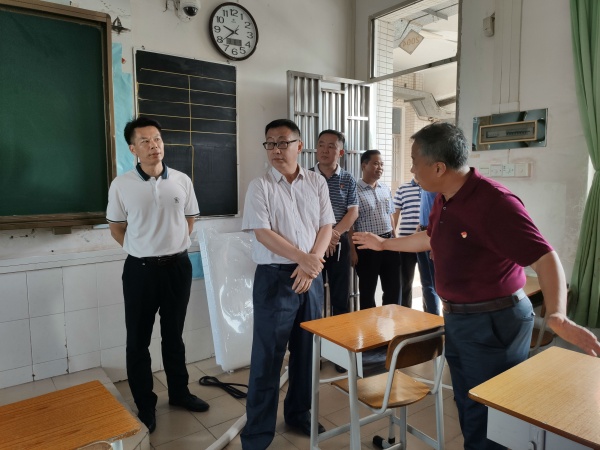 首先,徐寧軍書記仔細(xì)詢問了中考期間學(xué)校考務(wù)安排、學(xué)生考前學(xué)習(xí)情況等,表達(dá)對中考工作的關(guān)心,對教師們辛勤工作表示慰問。隨后,盧新泉校長從考場的布置、考場設(shè)備實施保障、考生數(shù)量等方面向徐寧軍書記一行匯報了南頭鎮(zhèn)初級中學(xué)中考準(zhǔn)備工作的詳細(xì)情況。