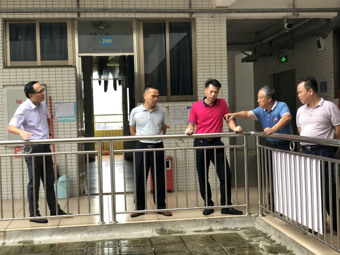 9月15日上午9時,南頭鎮黨委委員薛焯明,鎮宣傳辦公室(教體文旅局)主任(局長)姚華, 鎮教育和體育事務中心主任謝桂華,宣傳辦(教體文旅局)綜合股股長洪愛華和鎮文體教育局吳劍華老師一行五人冒雨到南頭鎮初級中學視察并指導工作。南頭鎮初級中學校長盧新泉、副校長梁紅令、副校長毛賢偉和學校總務處主任李忠漢全程陪同視察。