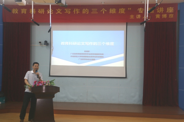 為更好地總結(jié)教育教學(xué)研究成果,提高一線教師的科研能力,2019年4月29日,由對甫小學(xué)主辦的“教育科研論文寫作的三個維度”專題講座在五樓錄播室舉行。本次講座有幸邀請到了廣東省教師繼續(xù)教育學(xué)會教研室副研究員、華南師范大學(xué)附屬順德北滘?qū)W校科研顧問 、廣東教育雜志社編輯黃博彥老師為主講人。對甫小學(xué)中青年教師、黃圃鎮(zhèn)學(xué)校部分青年教師參加了本次講座。