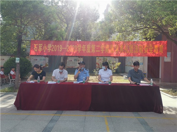 首先,梁毅強老師致開場詞,由于新型冠狀疫情的影響,全體師生教學和學習的時間有限,但是在老師們的辛勤的教導下,同學們積極向上,收獲了成功和喜悅,祝賀大家,并宣布石軍2019-2020學年第二學期散學典禮暨法制安全教育現在開始。