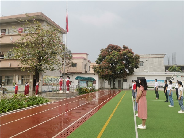 雨停了,升旗手各就各位,全體老師和學生們進行了莊嚴肅穆的升旗儀式,伴隨著激昂的國歌,回憶著這次為疫情奉獻的英雄們,感恩他們,也感恩祖國,才有今天的平安歸校。