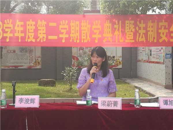 接著,梁蔚菁校長發表了熱情洋溢的講話,她肯定了全體師生在這學期取得的可喜成績,對努力學習的同學們和辛勤工作的全體教師表示感謝,同時對同學們的假期生活提出要求:希望同學們能在暑假中注意安全、繼續努力學習、勤于家務勞動,注重文明禮儀,學會禮貌待人。