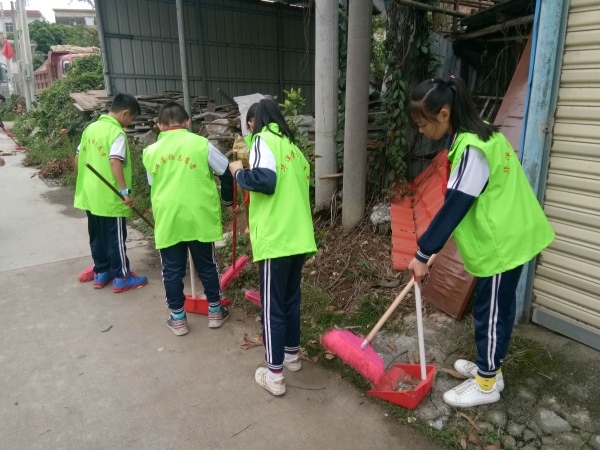 活動開始,少先隊員們興高采烈地拿著勞動工具,一個個精神抖擻,不怕臟不怕累,爭先恐后干得熱火朝天。有的拿著掃帚清理道路,有的拿著鏟子鏟粘地面比較緊不易打掃的垃圾,還有的同學(xué)兩人一組抬著垃圾桶來回的搬運著垃圾,同學(xué)們個個手腳并用,將一處處的垃圾清掃一空,老師們也身先士卒,參與到活動中來,同學(xué)們見狀更是倍受鼓舞,干得更加積極,師生共同努力,掃得不亦樂乎,街道上、衛(wèi)生死角里到處都可以看見揮舞著的掃把和同學(xué)們辛勤的汗水,現(xiàn)場秩序井然,氣氛熱鬧非常。通過同學(xué)們近一個小時的努力,路上展現(xiàn)出一番新的亮麗景象,周邊的村民們也露出了贊許的目光。