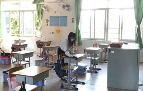 從4月20日開始,老師們除了正常的網上教學外,還要嚴格按上級要求回校參加清潔等返校的各項準備工作。4月27日開學后,全體老師都參與了錄課、上課、組織考試、負責消毒、看管學生洗手吃飯、跟蹤上報走讀學生放學后回家時間等工作。老師們為了完成錄課,白天沒有時間,就晚上加班錄制。課堂上為幫助部分網課效率不高學生,老師們采用的是錄播課和自己講授結合的教學模式,設法提高課堂的針對性和有效性。班主任的工作量更是成倍增長,從學生進校門的那一刻起,幾乎要全程陪伴。出勤情況、體溫測量、課室消毒、有序午晚餐、每天的體育鍛煉、走讀生網格管理……盡管老師們的付出比平時多很多,但他們從不埋怨,總是默默的把這些平凡的事情一一做好。