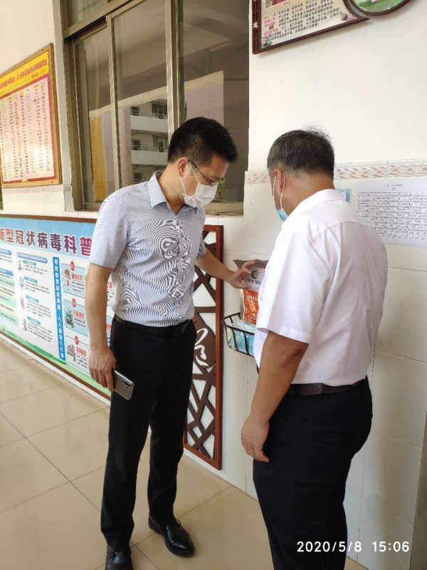 為確保第二批學生返校工作順利開展,保障廣大師生的健康安全,5月8日下午,南頭鎮鎮長藍海斌、鎮紀委書記余漾、黨委委員薛焯明及副鎮長肖彥余率檢查驗收組一行對南頭鎮初級中學第二批學生返校準備工作進行檢查驗收,并給予指導。