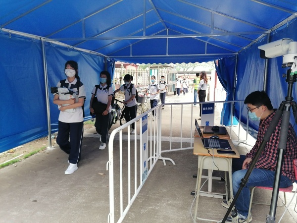 南頭鎮初級中學全校學生復學在即,學校大門是校園疫情防控的第一道防線 ,校門口測溫工作至關重要。但是,學校學生人數眾多,人工測溫方式速度較慢,容易影響學生進校時間,出現學生聚集的情況,所以,校門口測溫任務顯得較艱巨。當黃時康先生了解到相關情況后,二話不說,馬上聯系盧新泉校長,表明想捐贈人體熱感測溫系統協助學校做好校園疫情防控工作,并帶領工作人員于5月10日晚加班加點地將測溫系統安裝到學校北門。