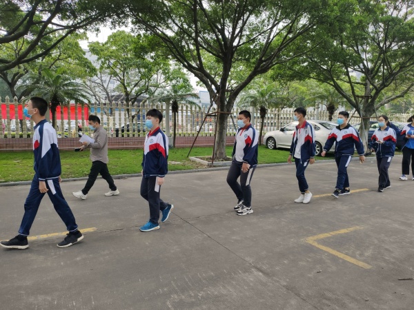 第一批次完成后,馬上組織第二批次的住宿生測量體溫,進入校門,直達宿舍放行李后,在自己的床鋪上等候廣播通知,錯峰下樓,保持間隔一米以上,由老師帶隊到檢測點檢測。檢測完成后,要求學生聯系在校門外等候的家長,立即離開學校。